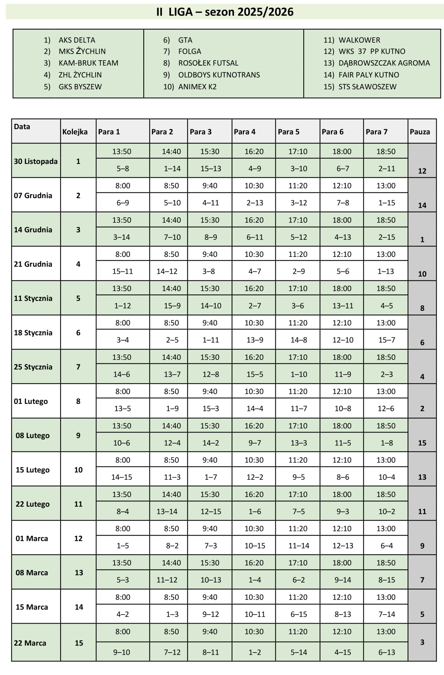 Podobnie jak w I lidze, kolejki odbywać się będą w niedziele – naprzemiennie poranne i popołudniowe.