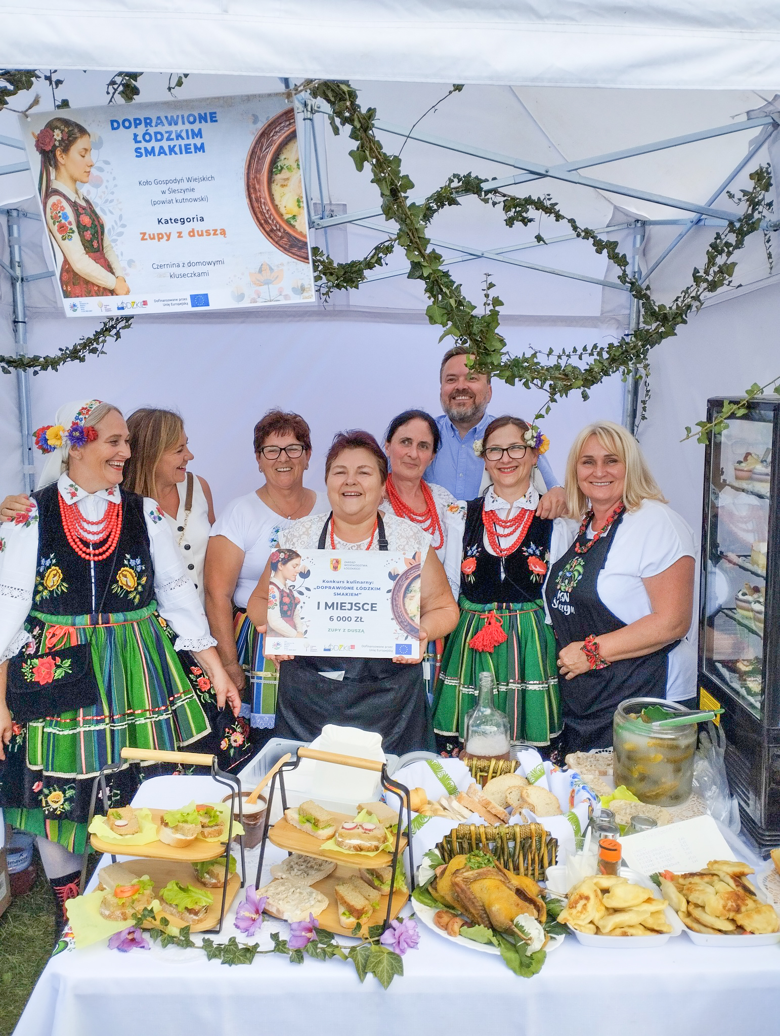 W kategorii „Zupy z duszą” gospodynie postawiły na regionalne smaki, bo dominowały żury, zalewajki i kapuśniaki. Nie zabrakło zupy śledziowej, maślanki czy zup owocowych. Panie wyśmienicie połączyły klasykę kuchni z nowoczesnym podaniem i oryginalnymi przyprawami, a podniebienia jurorów zachwyciła czernina z domowymi kluseczkami. I to właśnie ta zupa ugotowana przez KGW w Śleszynie (pow. kutnowski) otrzymała pierwszą nagrodę. Jak mówią gospodynie, to zupa nawiązująca do historii wsi i lokalnej, żychlińskiej kuchni, w której nic się nie marnowało.