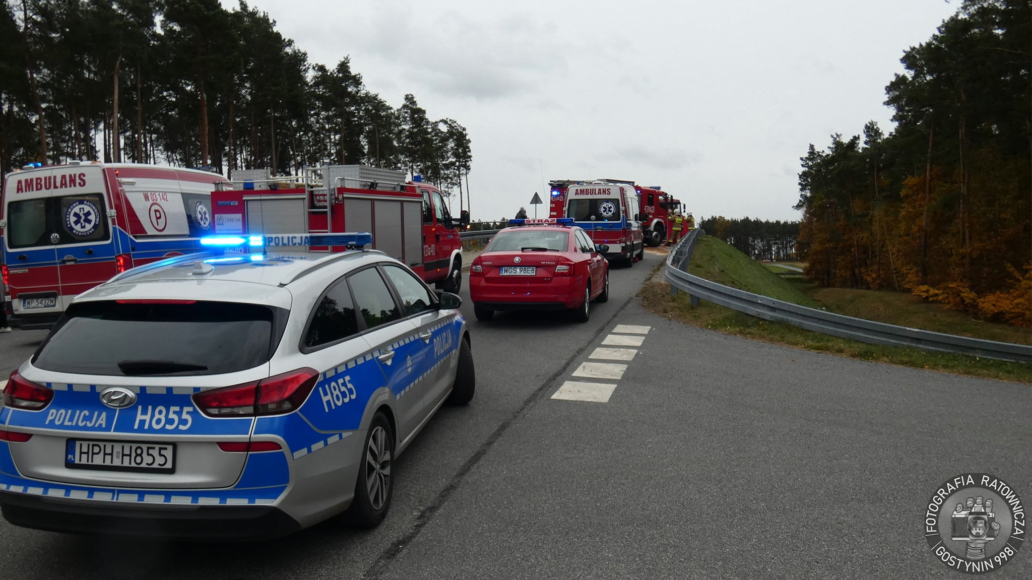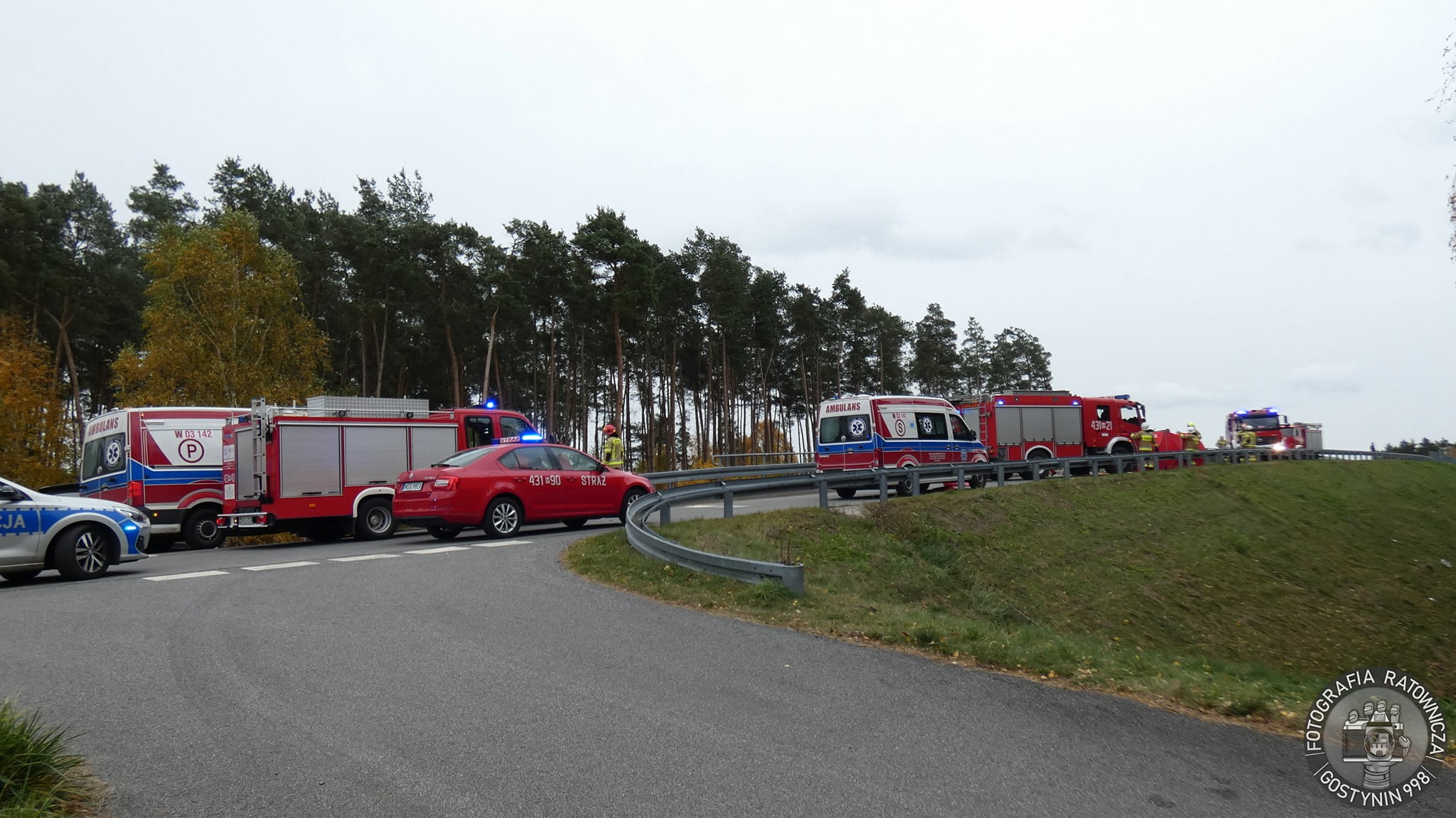Na miejsce zostały zadysponowane trzy zastępy z Jednostki Ratowniczo- Gaśniczej w Gostyninie oraz po jednym zastępie z OSP Lucień i OSP Gostynin. Po dojechaniu na miejsce strażacy zastali dwa auta osobowe, które rozbiły się na środku wiaduktu. W autach znajdowało się dwóch poszkodowanych.