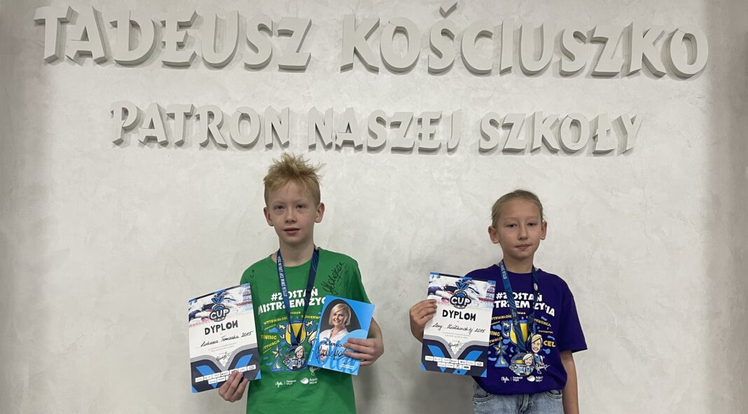 Gratulacje dla Łukasza Tomczaka i Leny Ziółkowskiej, uczniów ze Szkoły Podstawowej nr 1 im. Tadeusza Kościuszki w Kutnie za zdobycie złotych medali w pływaniu stylem klasycznym podczas zawodów Otylia Swim Cup w Lublinie, które odbyły się w dniach 9-10 listopada 2024 roku. To wspaniałe osiągnięcie, szczególnie biorąc pod uwagę, że w zawodach uczestniczyło ponad 700 zawodników z całej Polski.