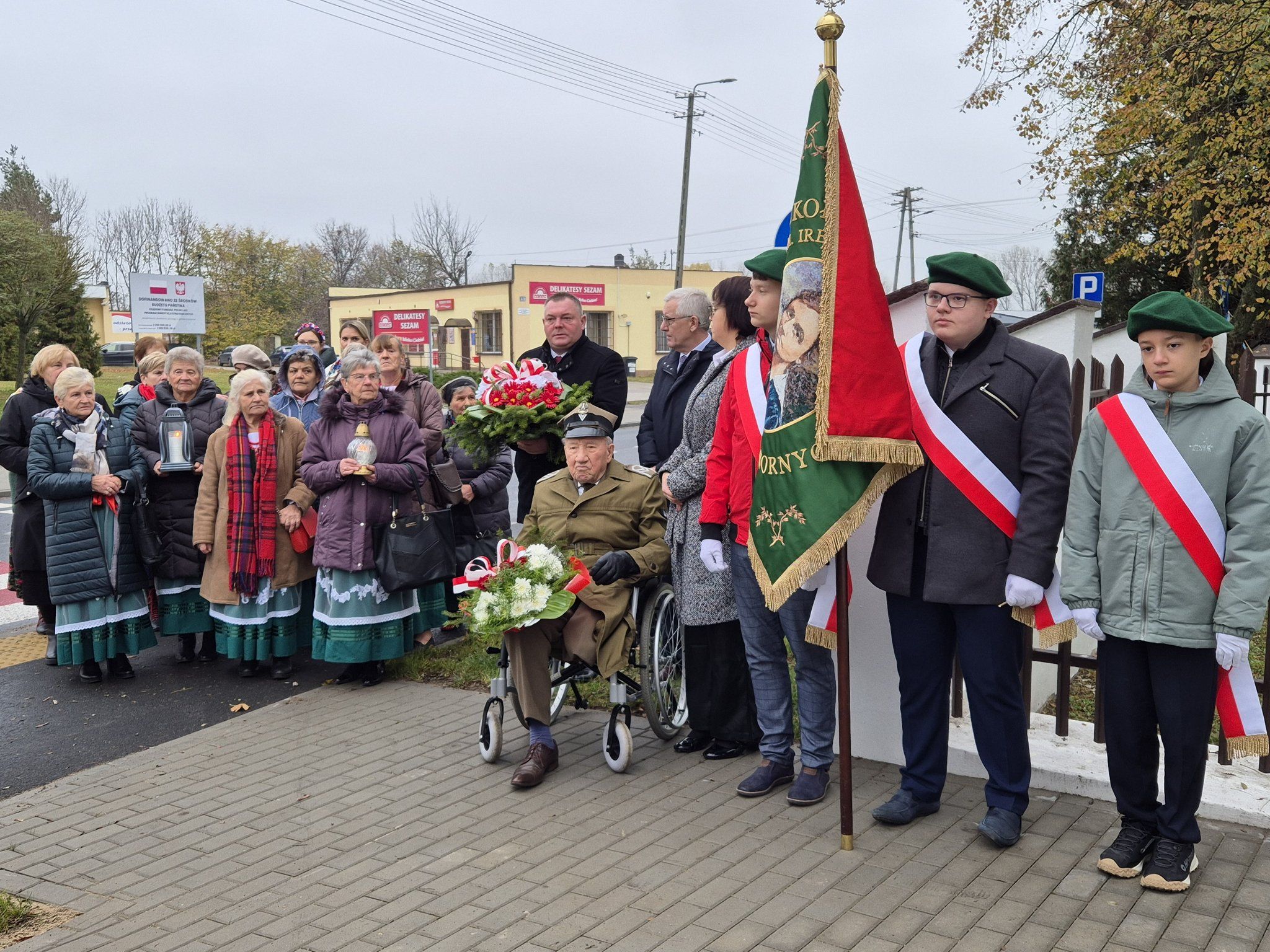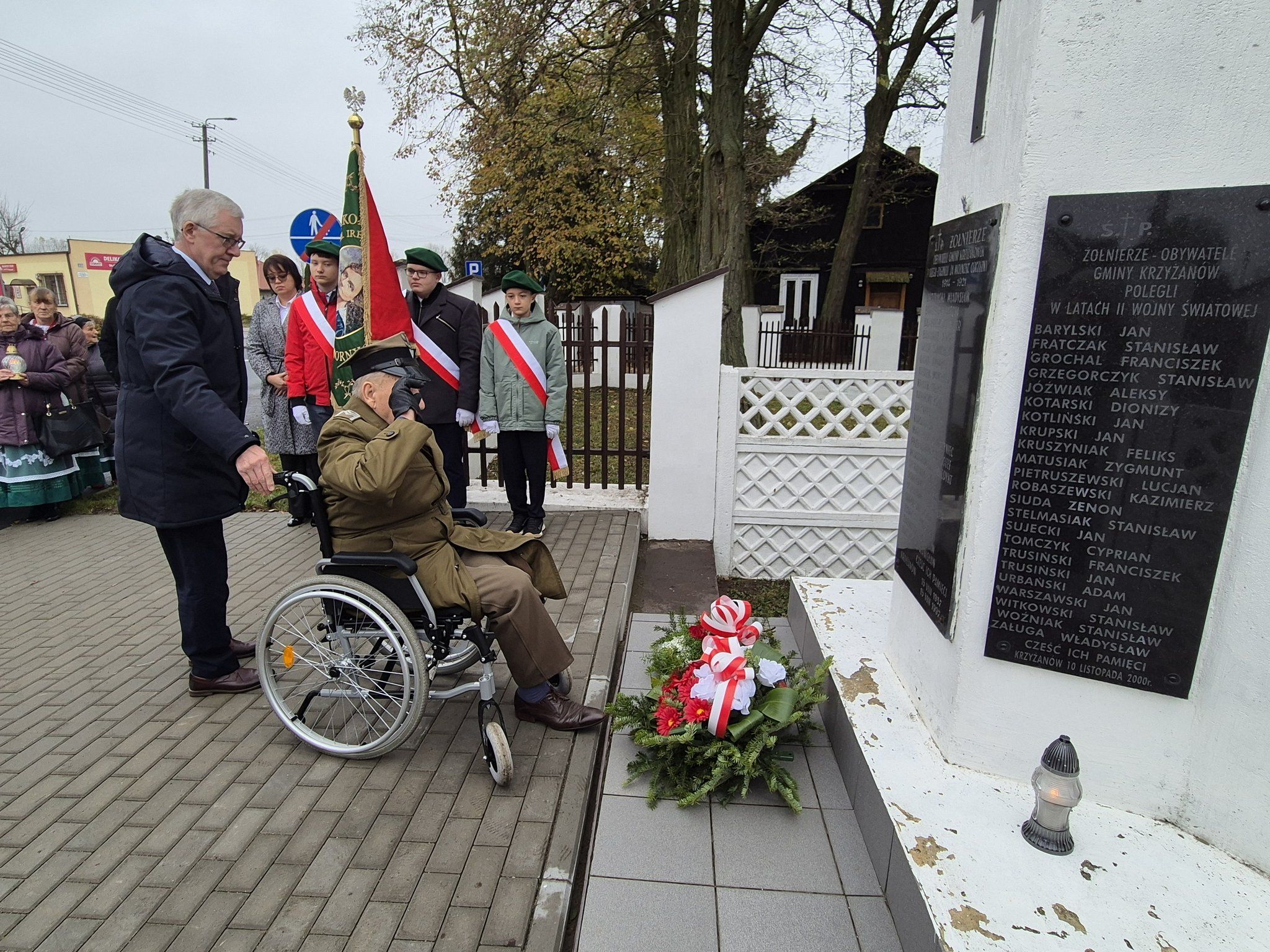 Udział w wydarzeniu wzięły władze samorządu gminy Krzyżanów: Wójt Gminy Tomasz Jakubowskie, Przewodniczący Rady Gminy Wiesław Czekaj, radni i sołtysi Gminy Krzyżanów oraz prezes Stowarzyszenia Wspierającego Rozwój Gminy Krzyżanów, kombatant wojenny Zygmunt Jasiński. W wydarzeniu uczestniczyły członkinie gminnych zespołów ludowych: „Niezapominajek”, „Rustowianek” i „Siemienic” oraz delegacje i poczty sztandarowe Szkoły Podstawowej im. Ireny Kosmowskiej w Kaszewach Dwornych i Szkoły Podstawowej im. Kornela Makuszyńskiego w Krzyżanowie.