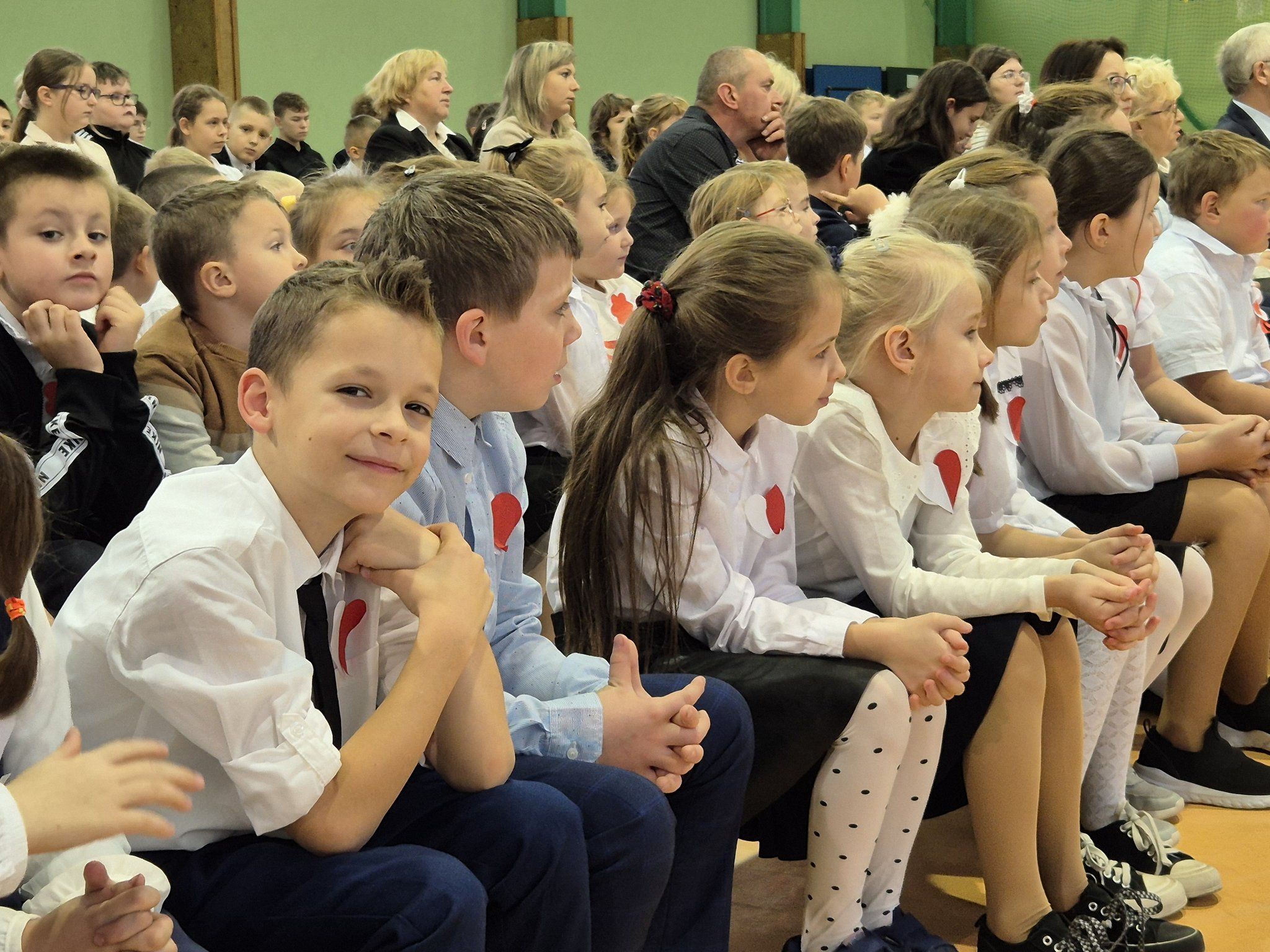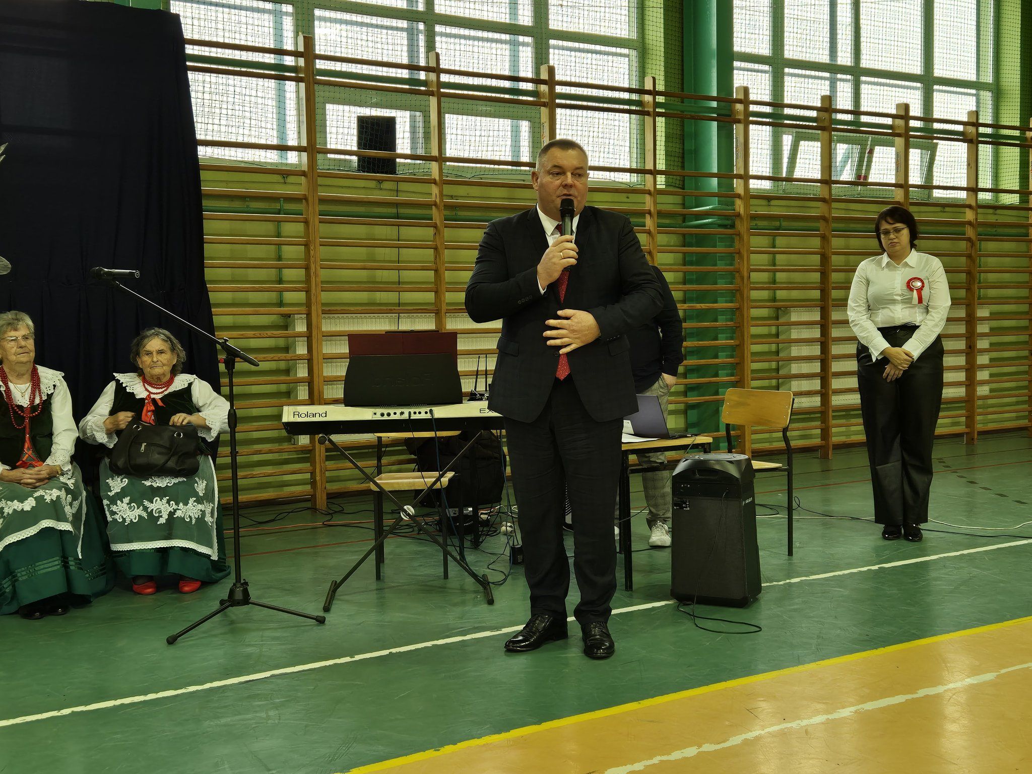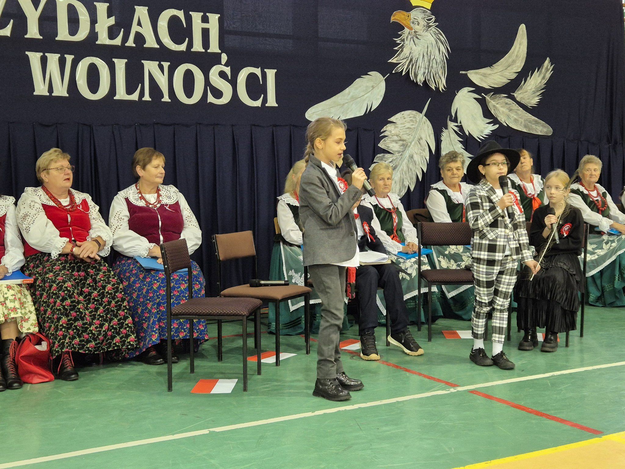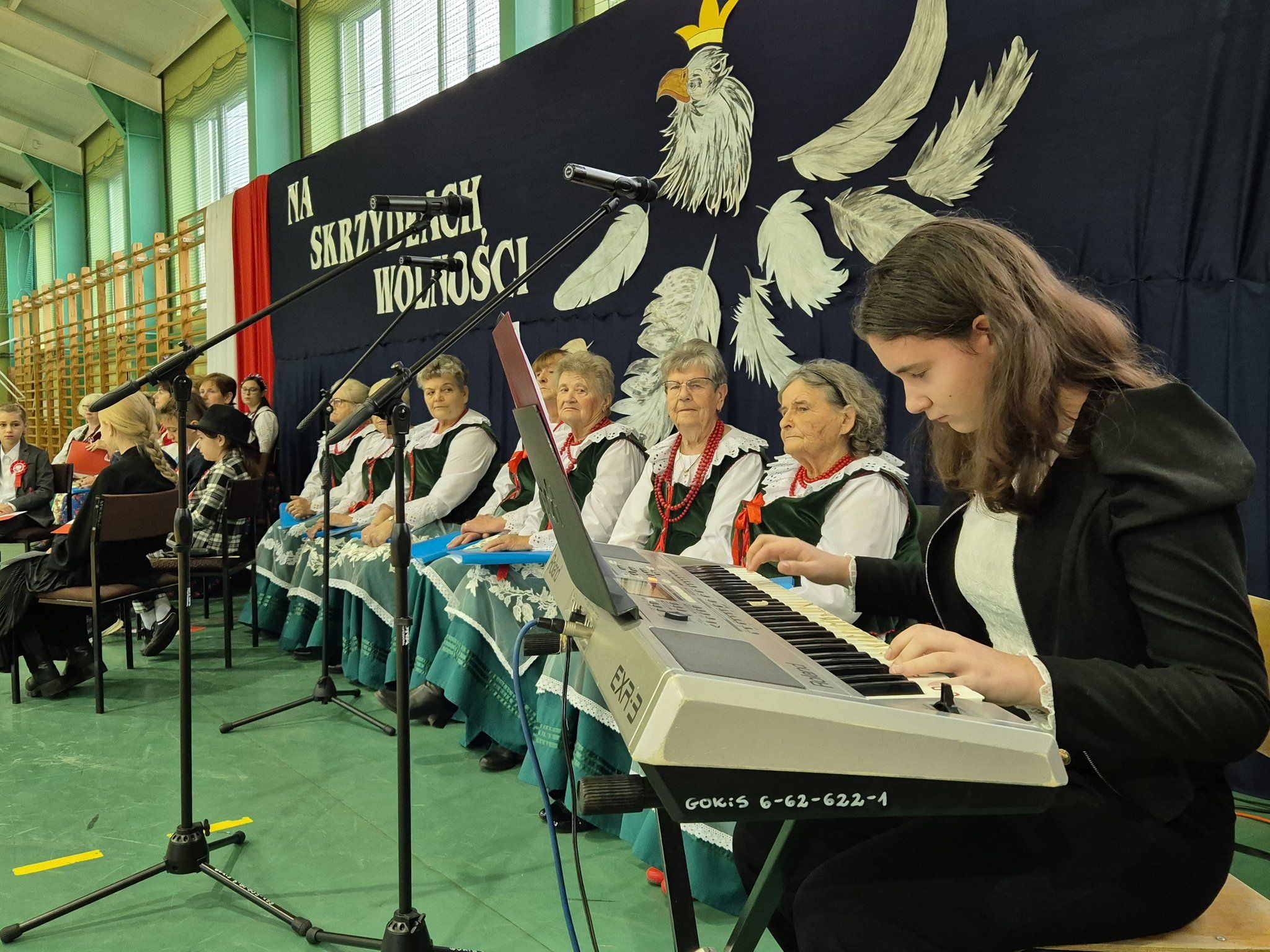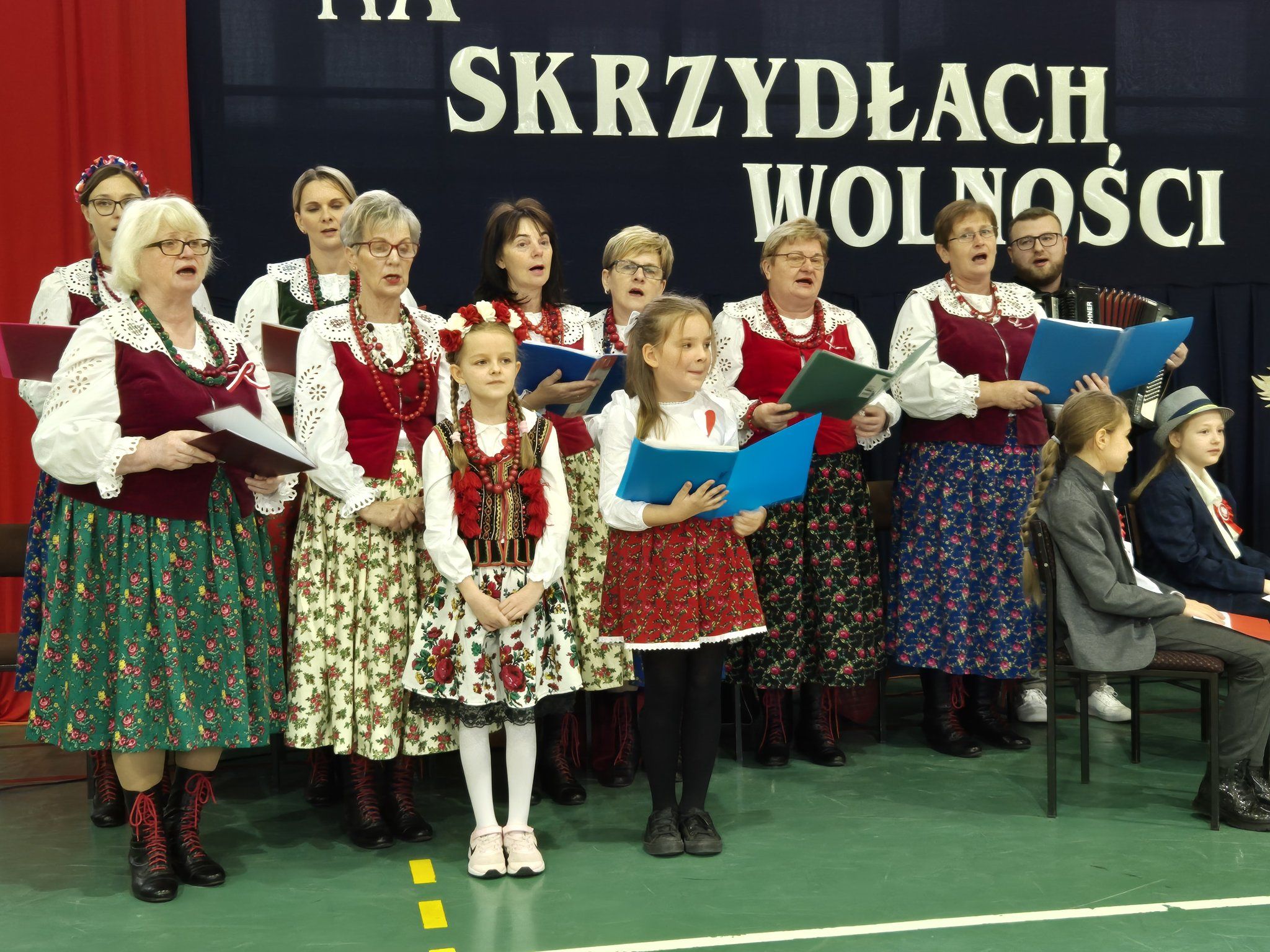 W pięknie udekorowanej, przez nauczycielkę Halinę Jabłońską, hali sportowej szkoły, uczestniczyliśmy w wokalno-muzycznej podróży niepodległościowej i wolnościowej dziejów polskiego narodu. Po raz kolejny pieśń i muzyka połączyła pokolenia gminnej społeczności.