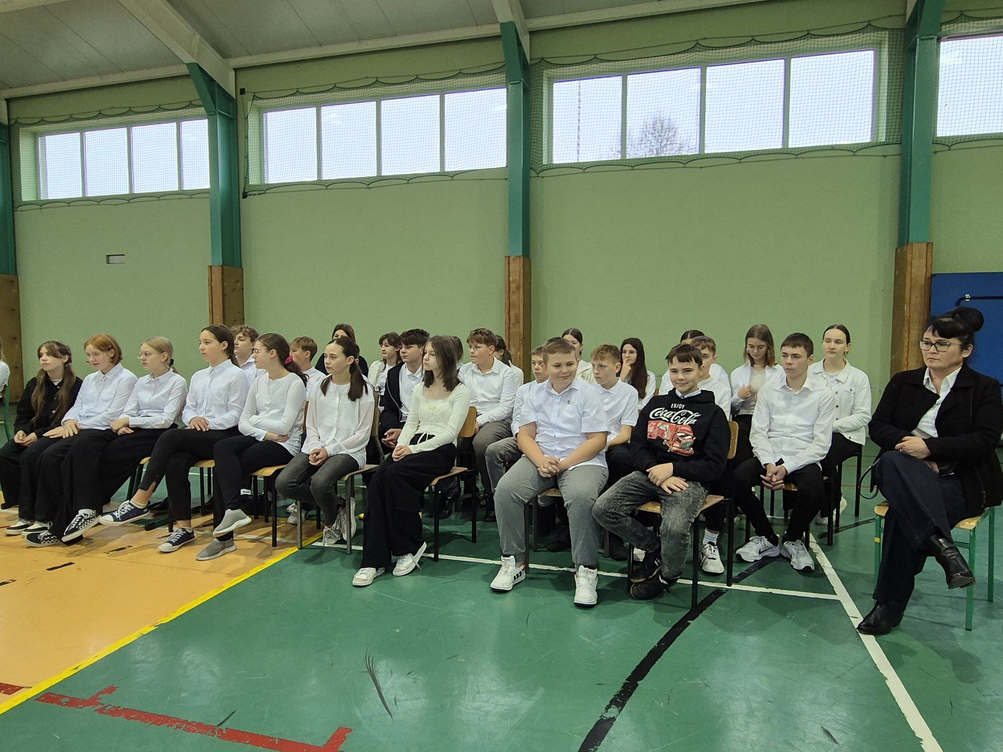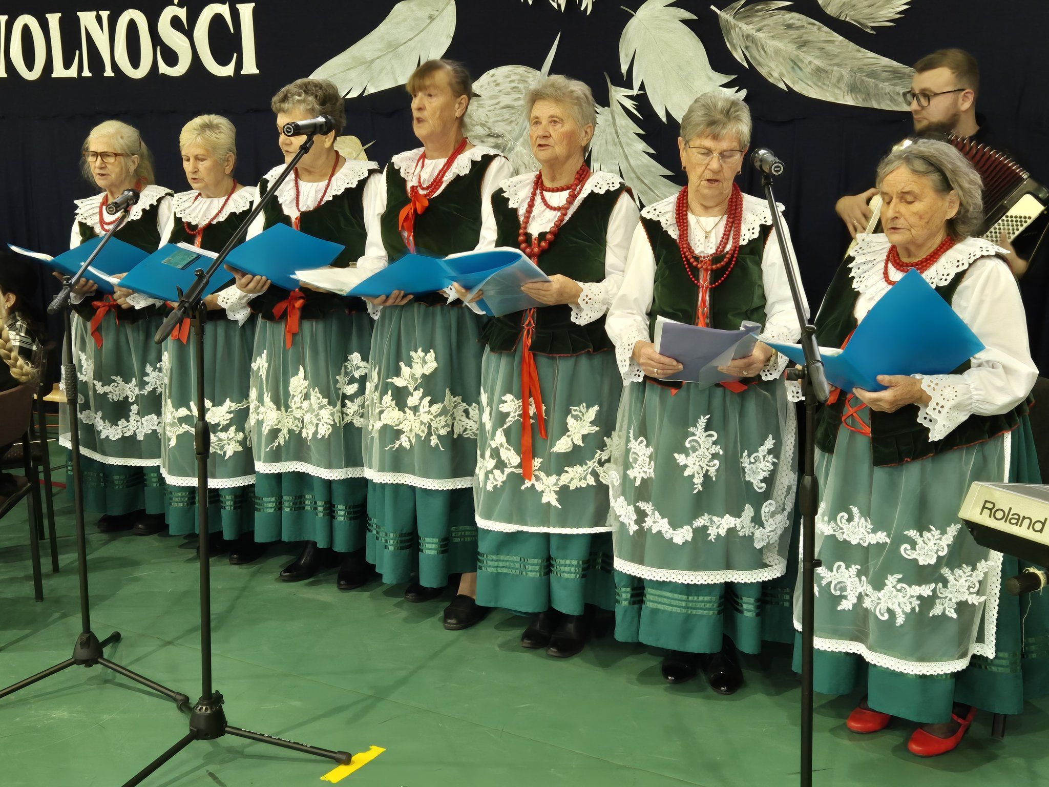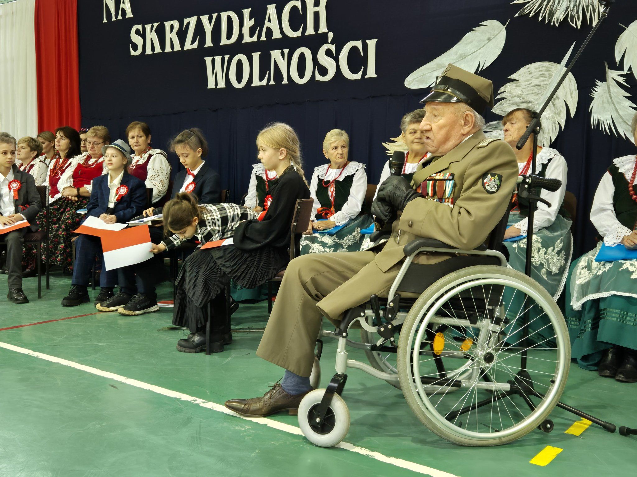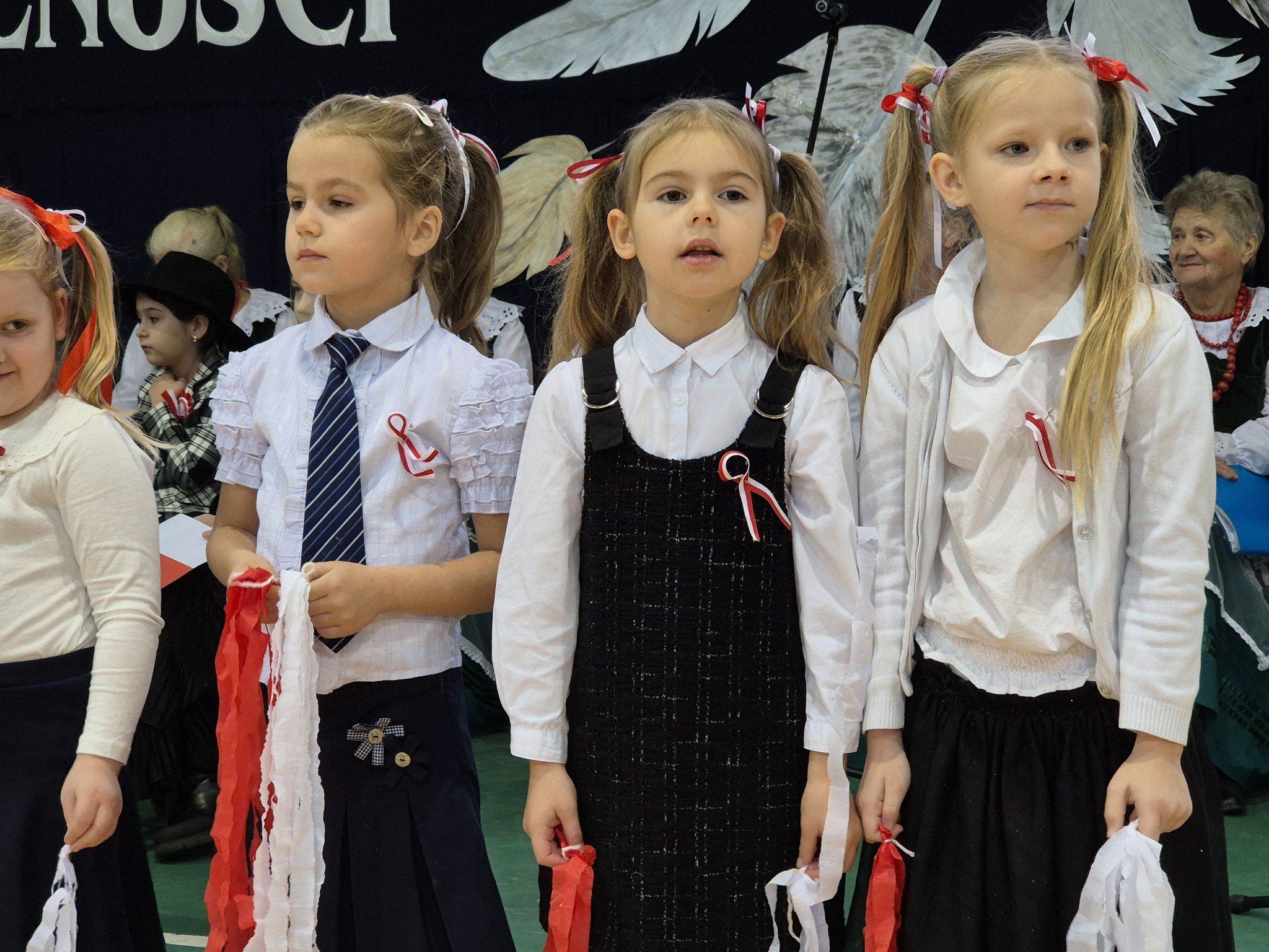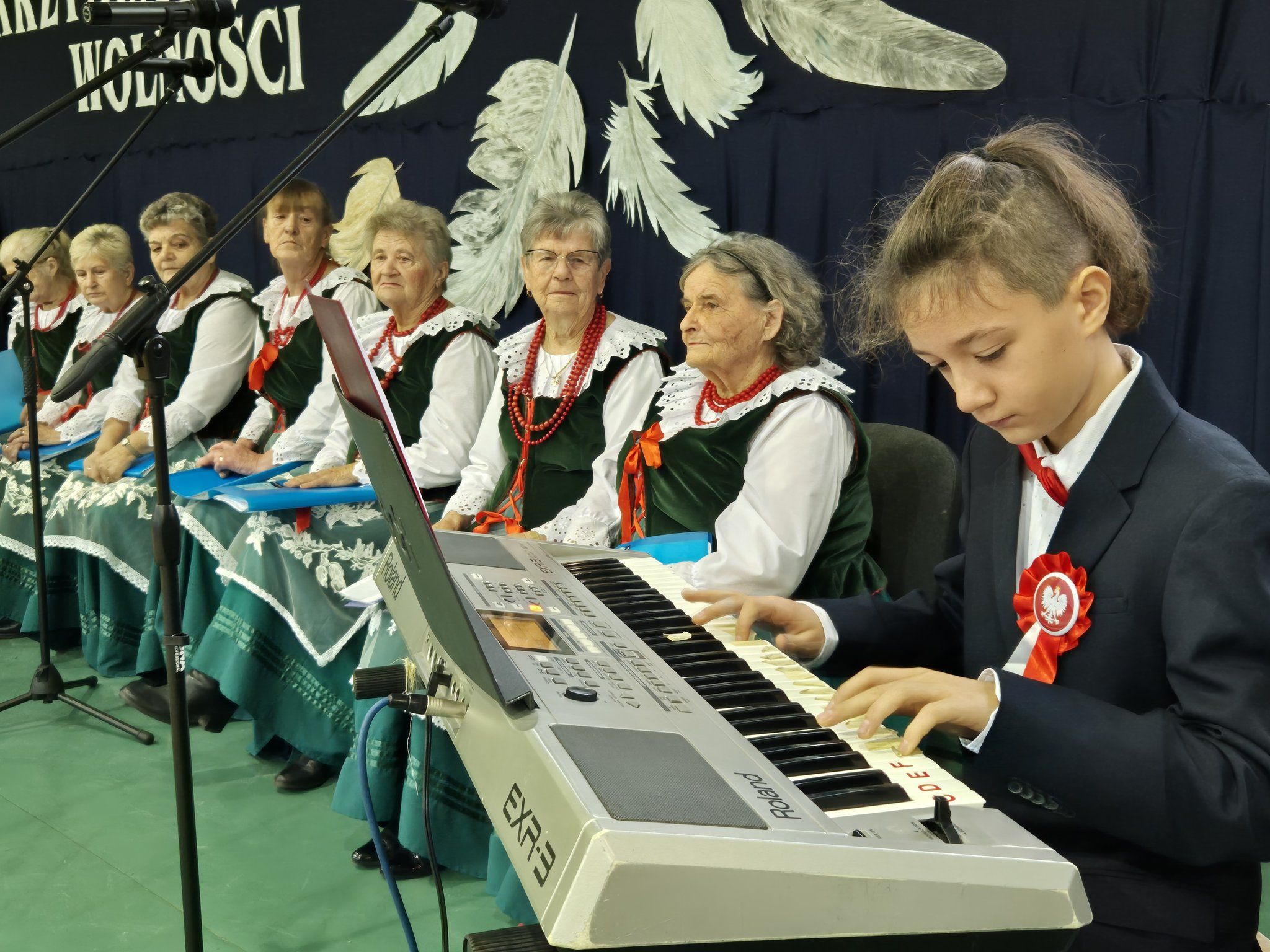 W pięknie udekorowanej, przez nauczycielkę Halinę Jabłońską, hali sportowej szkoły, uczestniczyliśmy w wokalno-muzycznej podróży niepodległościowej i wolnościowej dziejów polskiego narodu. Po raz kolejny pieśń i muzyka połączyła pokolenia gminnej społeczności.