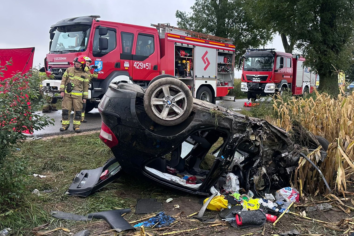 Strażacy wydobyli mężczyznę zakleszczonego w BMW za pomocą specjalistycznego sprzętu. Niestety, lekarz obecny na miejscu stwierdził jego zgon. Trwa ustalanie dokładnych okoliczności tragedii.