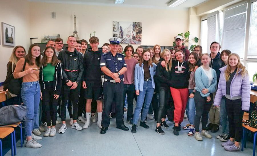 To doskonała okazja aby zapoznać młodzież z przepisami ruchu drogowego i wyczulić na najważniejsze aspekty dotyczące bezpieczeństwa na drodze. Prelekcję poprowadził asp.szt. Jacek Czerniawski w Wydziału Ruchu Drogowego.