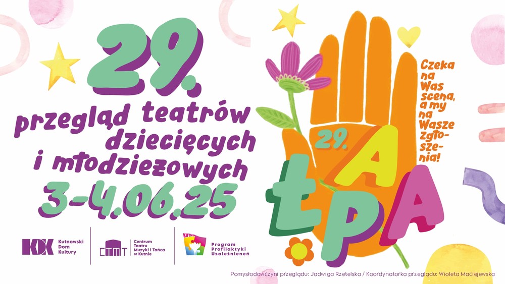 Trwają zgłoszenia do popularnego 29. Przegląd Teatrów Dziecięcych i Młodzieżowych ŁAPA. Przegląd odbędzie się na początku czerwca, a zgłoszenia są przyjmowane do 22 kwietnia. Poniżej szczegóły.