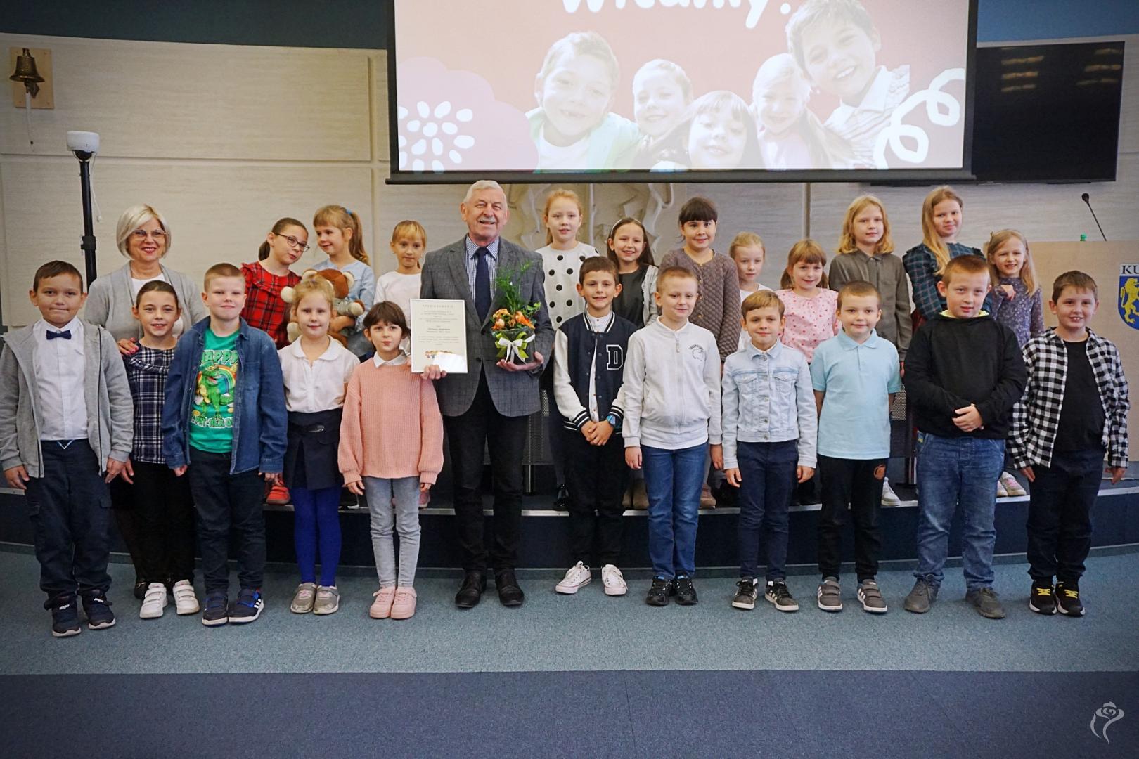 Urząd Miasta Kutna odwiedzili uczniowie kl. IIB ze Szkoły Podstawowej nr 2 im. Marszałka Józefa Piłsudskiego w Kutnie. Spotkanie miało na celu zapoznanie młodych mieszkańców miasta się z najważniejszymi zadaniami, jakie realizuje samorząd miejski. Pokrótce przybliżył je Prezydent Zbigniew Burzyński.