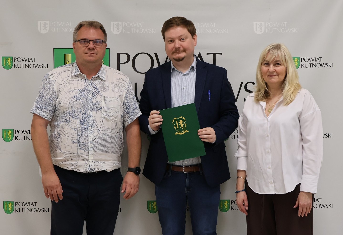 W Starostwie Powiatowym w Kutnie podpisano umowę na realizację kolejnego zadania w ramach inwestycji drogowych prowadzonych przez Powiat Kutnowski. Dokument podpisali Starosta Kutnowski Daniel Kowalik i Członek Zarządu Powiatu Kutnowskiego Jolanta Pietrusiak.