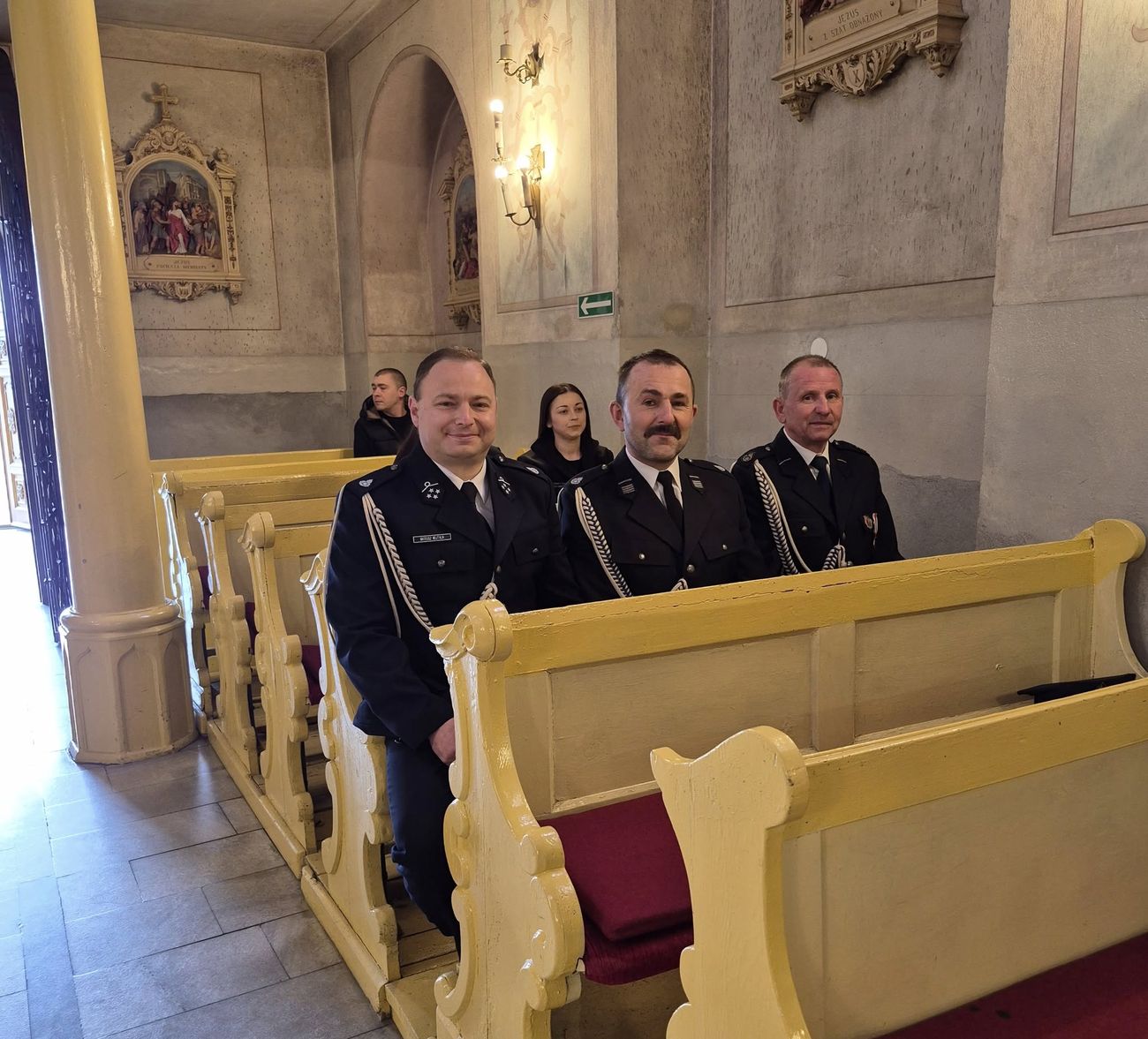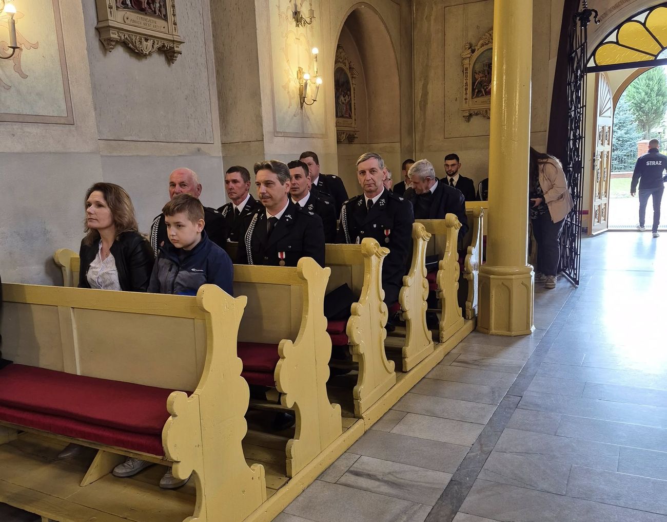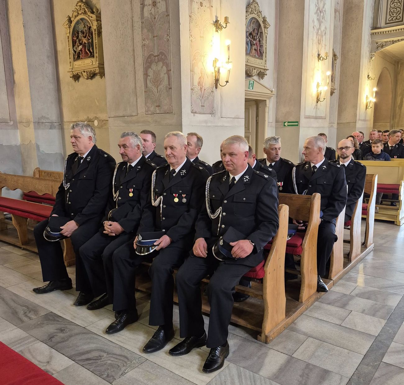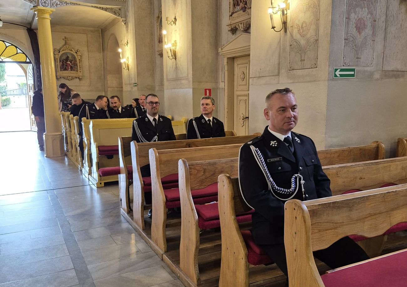 Następnie, w intencji wszystkich strażaków – zarówno czynnych, jak i emerytowanych oraz ich rodzin – odprawiona została Msza Święta. Eucharystię w kościele parafialnym celebrował ksiądz Grzegorz Cieślak, podkreślając wartość ich służby, odwagę oraz gotowość do poświęceń dla dobra drugiego człowieka.