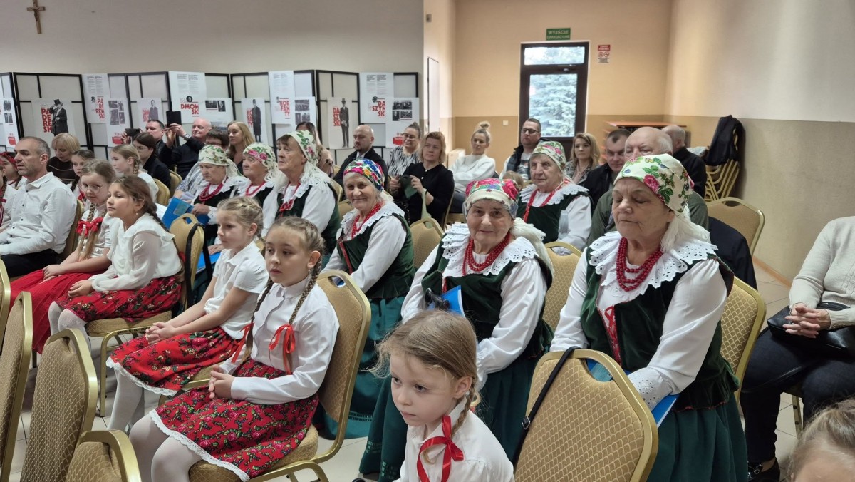Nie mogło zabraknąć rodzimego folkloru. Publiczność wysłuchała koncertu pieśni i piosenek patriotycznych w wykonaniu Zespołu Śpiewaczego „Niezapominajki”, który wprowadził wszystkich w nastrój wspólnego śpiewania i refleksji. Paniom akompaniował instruktor muzyki Konrad Orlikowski.