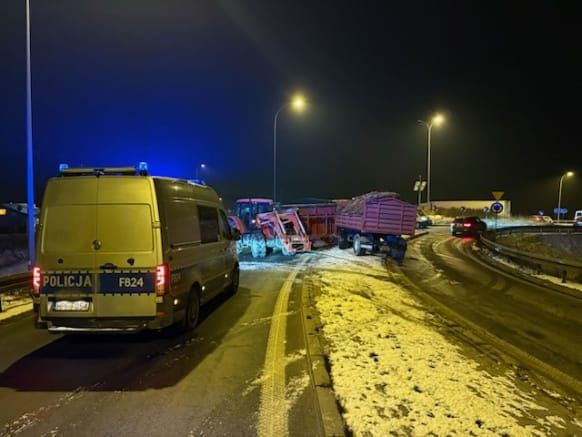 — 58-letni kierujący ciągnikiem rolniczym doprowadził do wywrócenia jednej z przyczep z obornikiem. Kierujący był trzeźwy. Jeden pas drogi, w kierunku od Płocka do Kutna, jest całkowicie zablokowany — informuje aspirant Daria Olczyk z Komendy Powiatowej Policji w Kutnie.