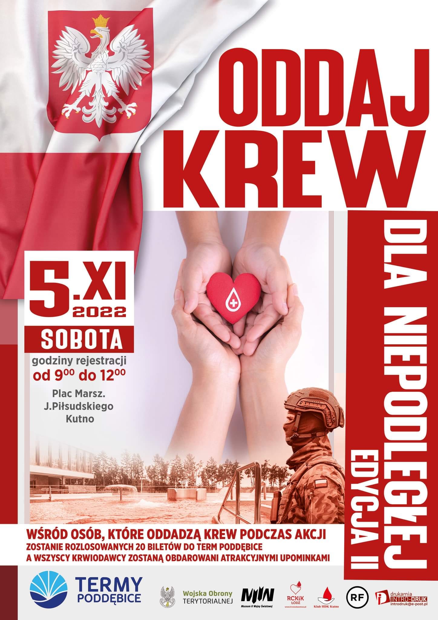 W najbliższą sobotę 5 listopada w Kutnie odbędzie się druga edycja akcji krwiodawstwa „Oddaj krew dla Niepodległej”.