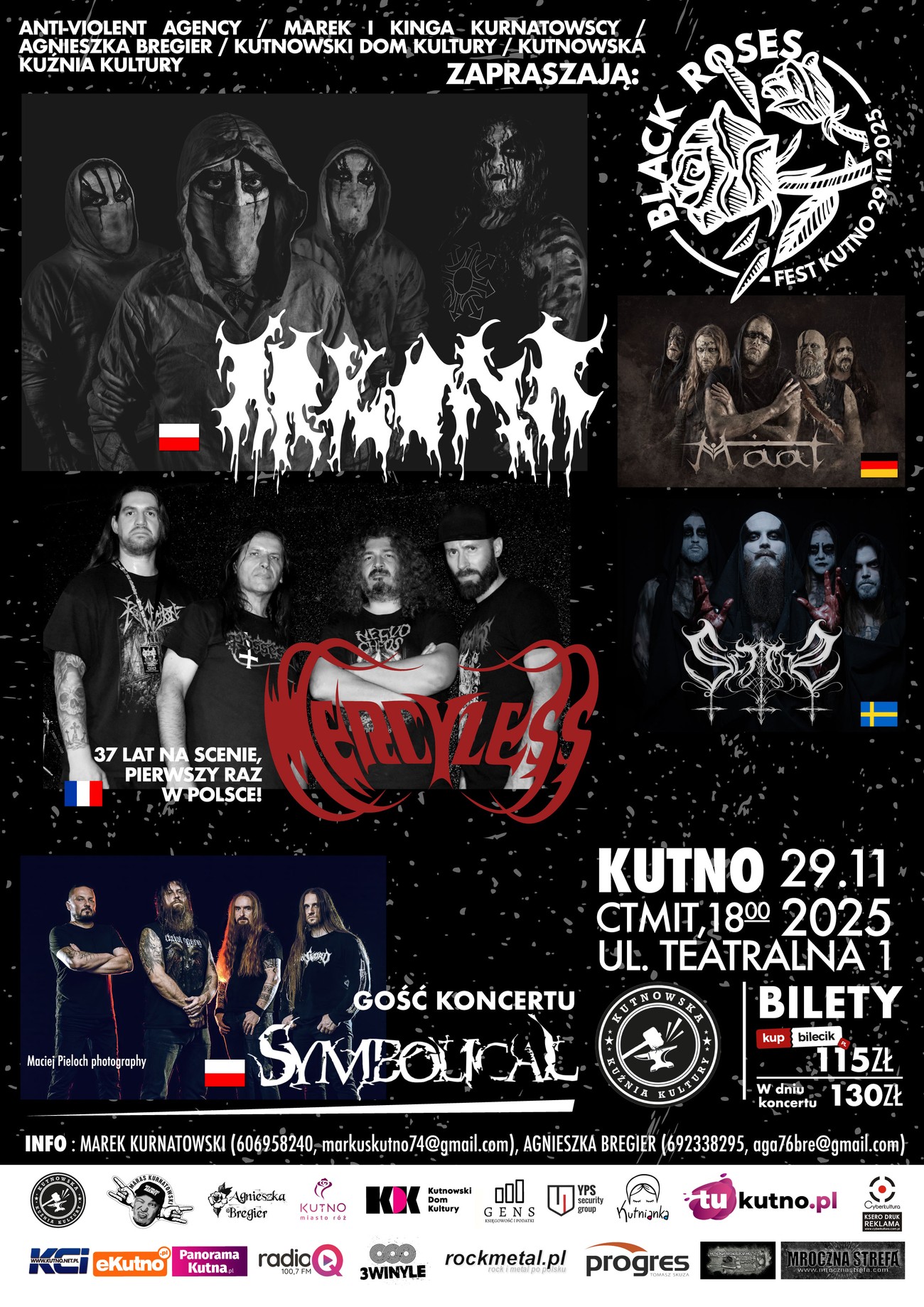 Zespoły Mercyless, Maat, Arkona i Scitalis, Symbolical zagrają na „Black Roses Fest”. Wydarzenie odbędzie się 29 listopada 2025 roku w „Centrum Teatru Muzyki i Tańca” w Kutnie. Start godzina 18.00.