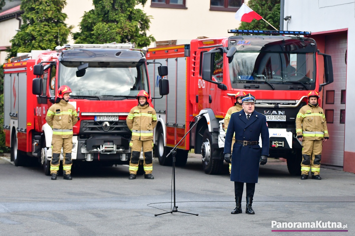 Podczas uroczystości nie brakowało przemówień. St. bryg. Marek Myszkowski, Komendant Powiatowy PSP w Kutnie, w trakcie swojego wystąpienia podziękował wszystkim za pomoc w pozyskaniu pojazdów i zapewnił, że sprzęt ten będzie należycie użytkowany. W dowód wdzięczności komendant wręczył okolicznościowe grawertony.