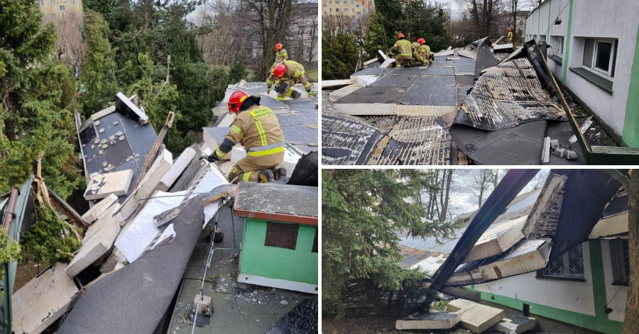 Jak informuje wicestarosta Magdalena Krupińska-Kotulska, w dniu dzisiejszym poderwało dach wierzchni na sali gimnastycznej w I Liceum Ogólnokształcącym im. gen. J.H. Dąbrowskiego w Kutnie, na powierzchni ok. 300m2. Na miejscu trwają prace Państwowej Straży Pożarnej, zabezpieczające obiekt i zerwane elementy.
