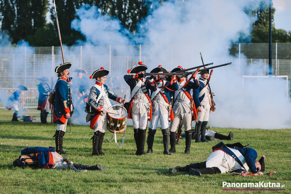 Scena działań wojennych została zaaranżowana tuż obok stadionu „Kutnowianki”, a całość przeniosła widzów w realia XVIII wieku. Huk wystrzałów, dym z luf muszkietów, wybuchy pirotechniczne i okrzyki żołnierzy – to wszystko stworzyło niezapomniane widowisko, które na chwilę zatrzymało czas.