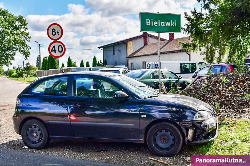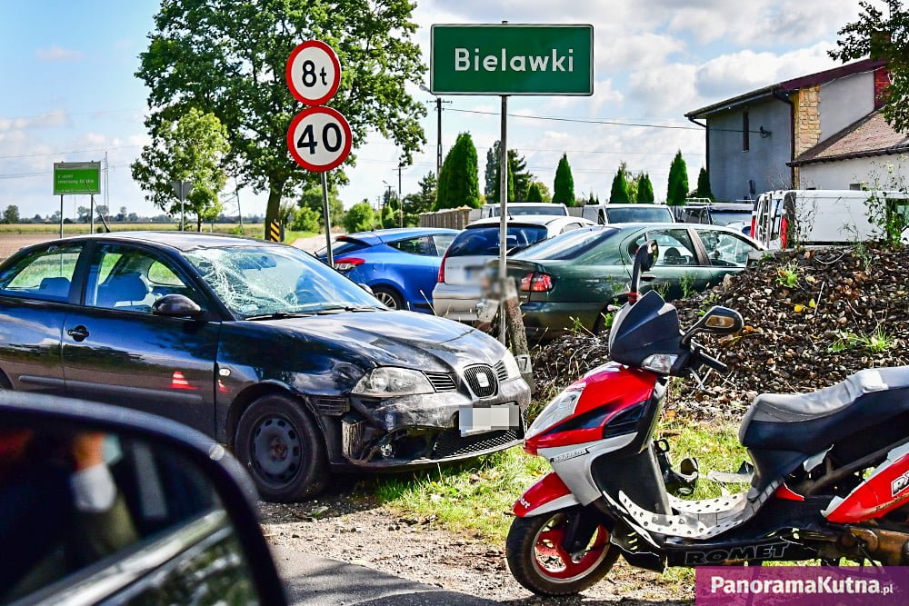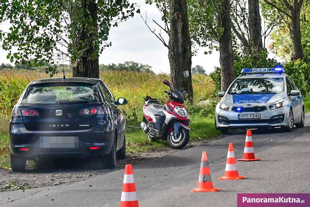 Z niewyjaśnionych na tę chwilę przyczyn na drodze z Kutna do Komadzyna osobowy Seat Ibiza zderzył się ze skuterem.
