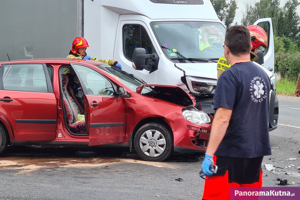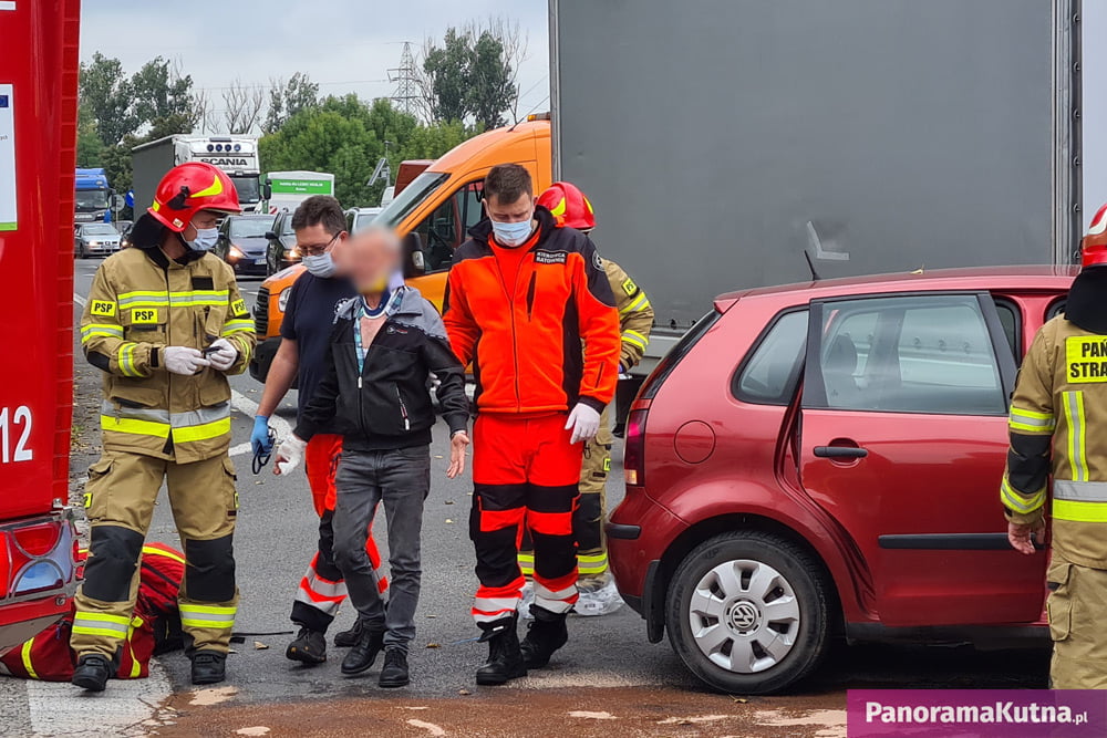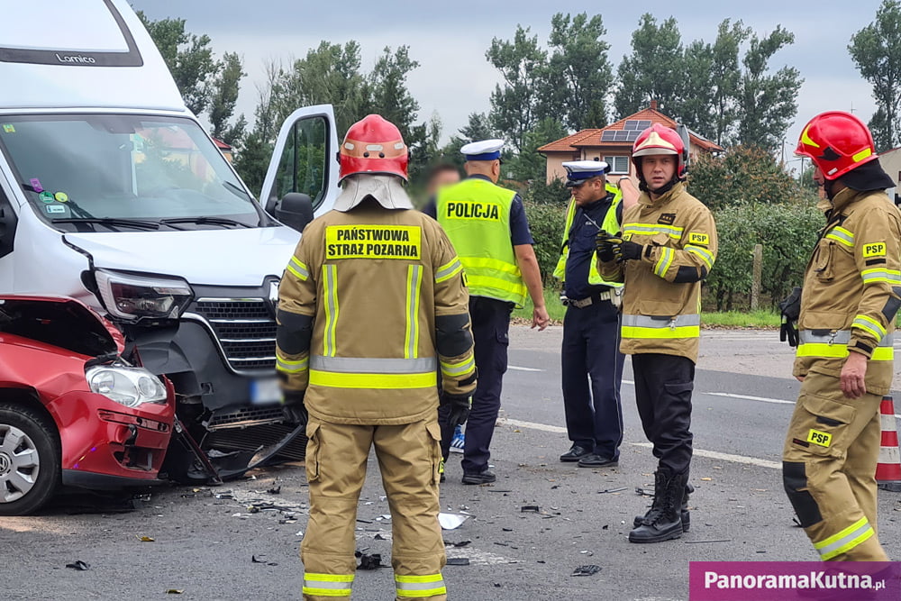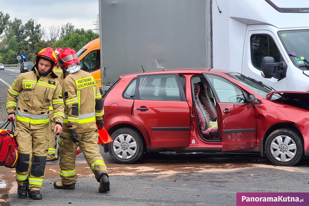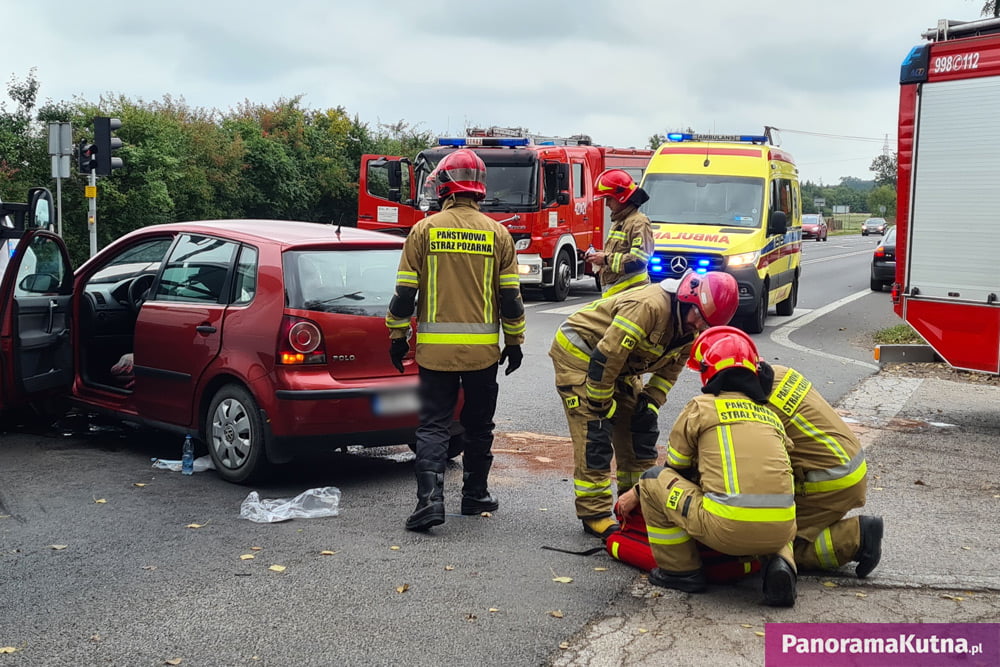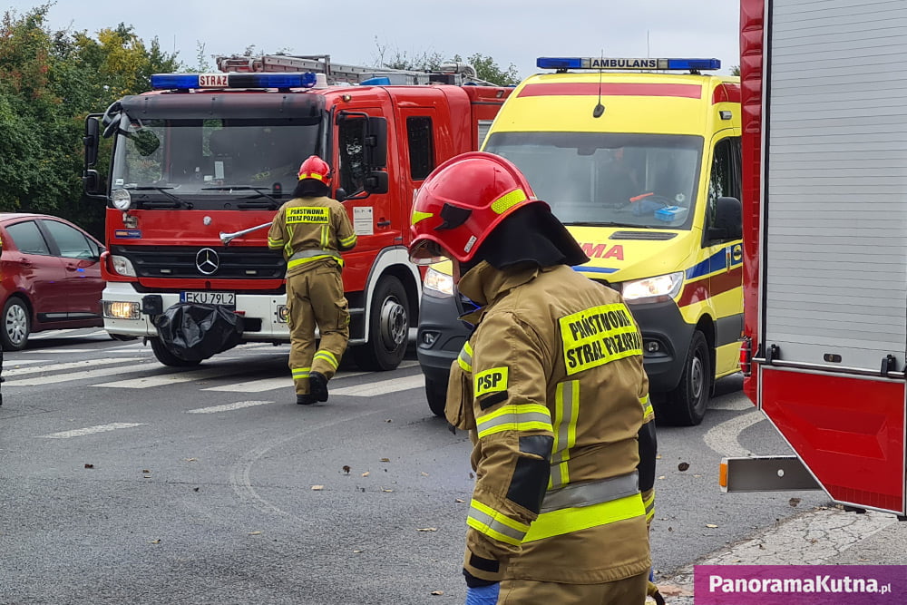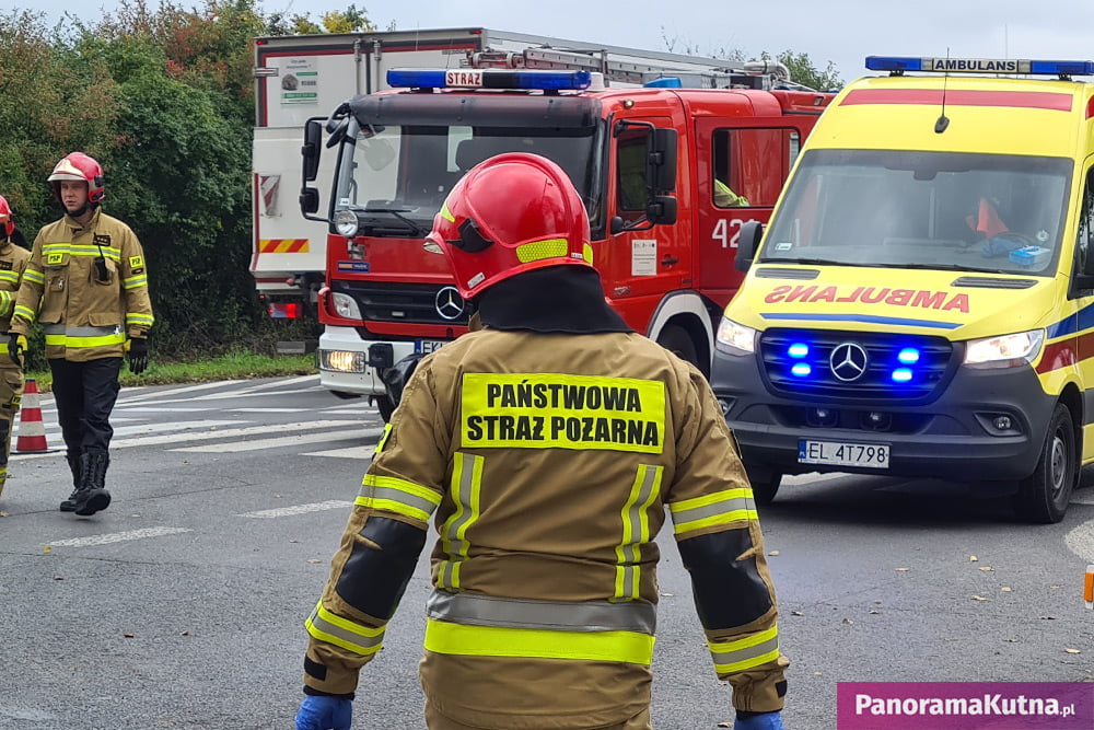 Na miejscu działania prowadzą strażacy z Kutna, a także policja i zespół ratownictwa medycznego. Trwa dokładne ustalanie okoliczności wypadku.