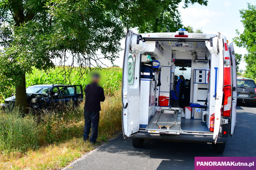 Z niewiadomych na tę chwilę przyczyn osobowe auto zjechało z drogi, wpadło do rowu i uderzyło w drzewo. Jedna osoba potrzebuje pomocy medycznej.