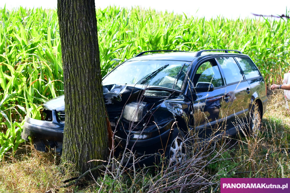 Z niewiadomych na tę chwilę przyczyn osobowe auto zjechało z drogi, wpadło do rowu i uderzyło w drzewo. Jedna osoba potrzebuje pomocy medycznej.