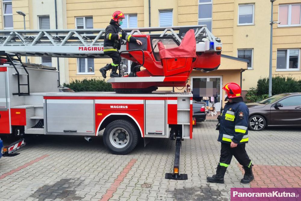 Na miejsce, zgodnie z obowiązującymi procedurami, zadysponowano trzy wozy strażackie – w tym wóz wyposażony w specjalistyczny podnośnik.