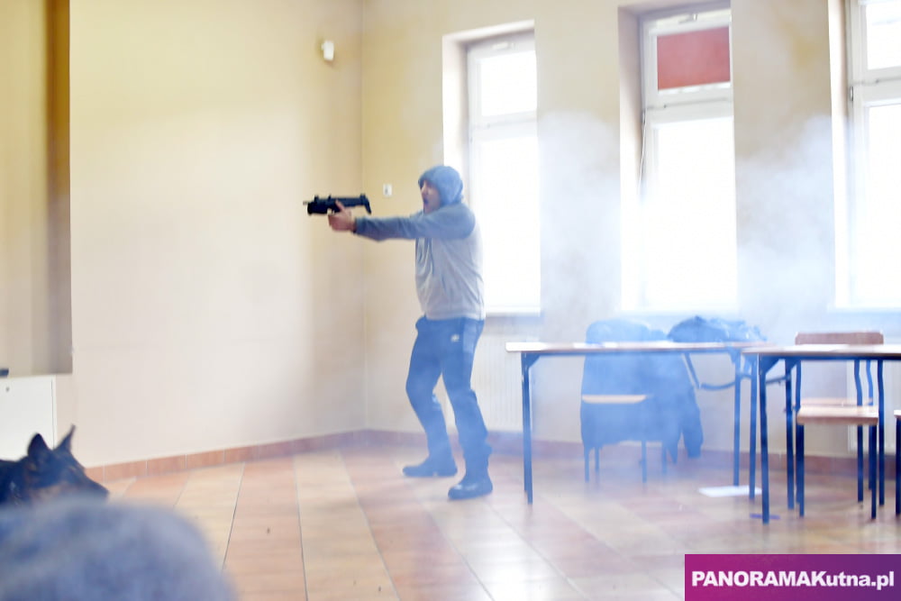 Punktem kulminacyjnym był efektowny pokaz (udział w nim wziął m.in. dzielnicowy Łukasz Walczak) – policyjni antyterroryści za zadanie mieli odbić uczniów zaatakowanych przez uzbrojonych terrorystów. Były strzały, wybuchy granatów hukowych i czworonożny funkcjonariusz.