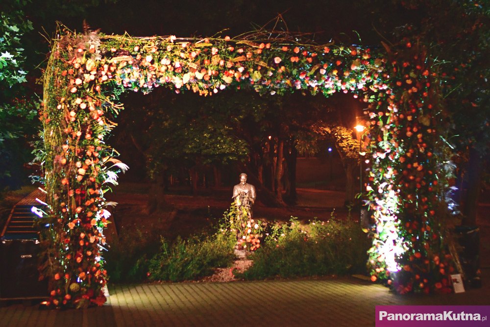 Różanych aranżacji nie brakuje także w innych częściach Parku Traugutta. Ten szczególnie klimatycznie prezentuje się po zmroku wśród rozświetlonych lampek czy kolorowego napisu I LOVE KUTNO.